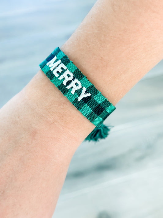 "Merry" Green Buffalo Plaid Woven Bracelet