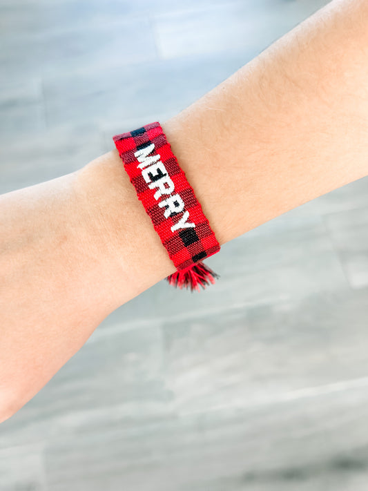 "Merry" Red Buffalo Plaid Woven Bracelet