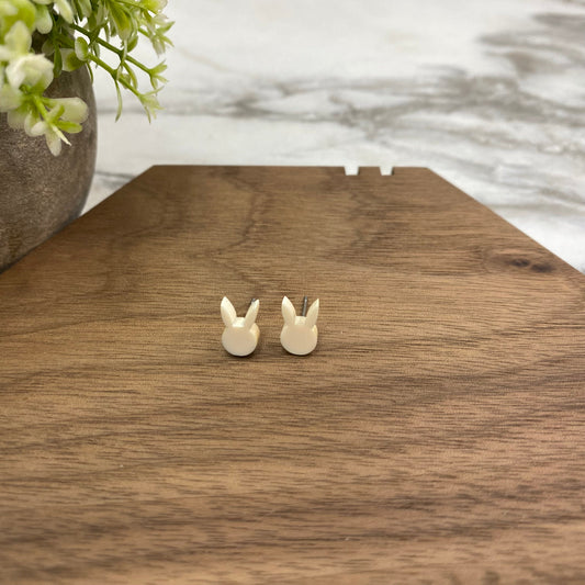 Acrylic Stud Earrings - Easter - Bunny Head - Cream