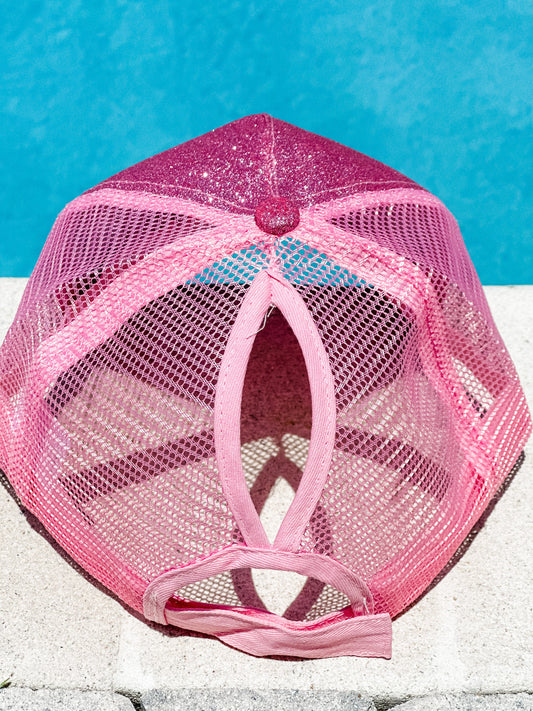 "All That Sparkle" Pink Trucker Ponytail Hat