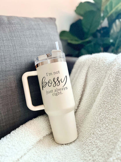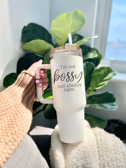 I'm Not Bossy Just Always Right Insulated Mug with handle, lid and straw