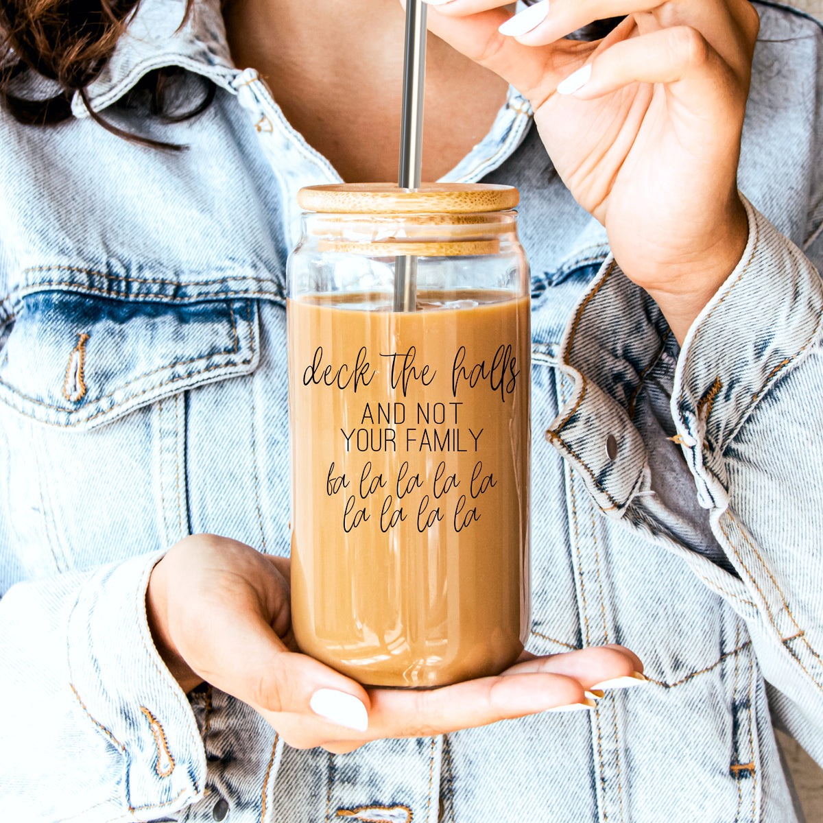 Our glasses with bamboo tops. Drink it with the top and straw of choice, remove the bamboo lid and drink straight from the glass.
