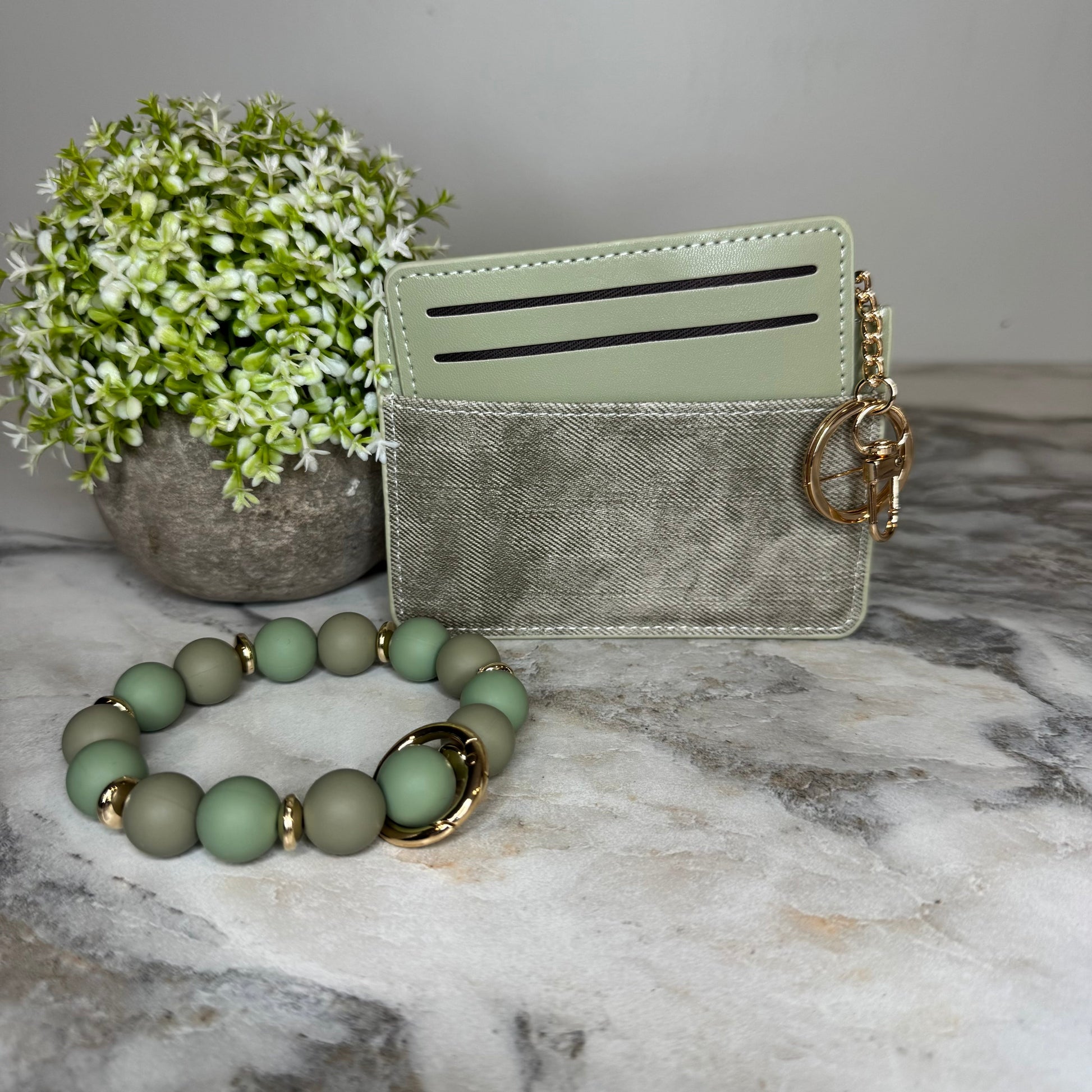Denim Suede Bracelet Keychain & Card Holder Wallet