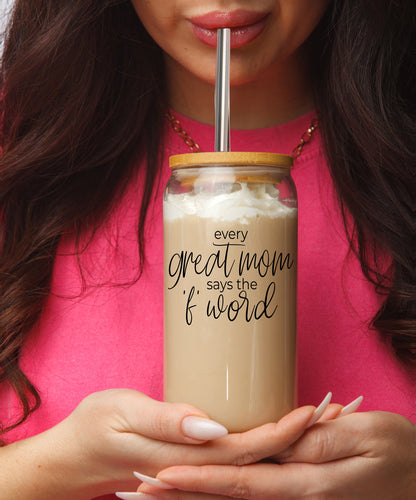 Our glasses with bamboo tops. Drink it with the top and straw of choice, remove the bamboo lid and drink straight from the glass.