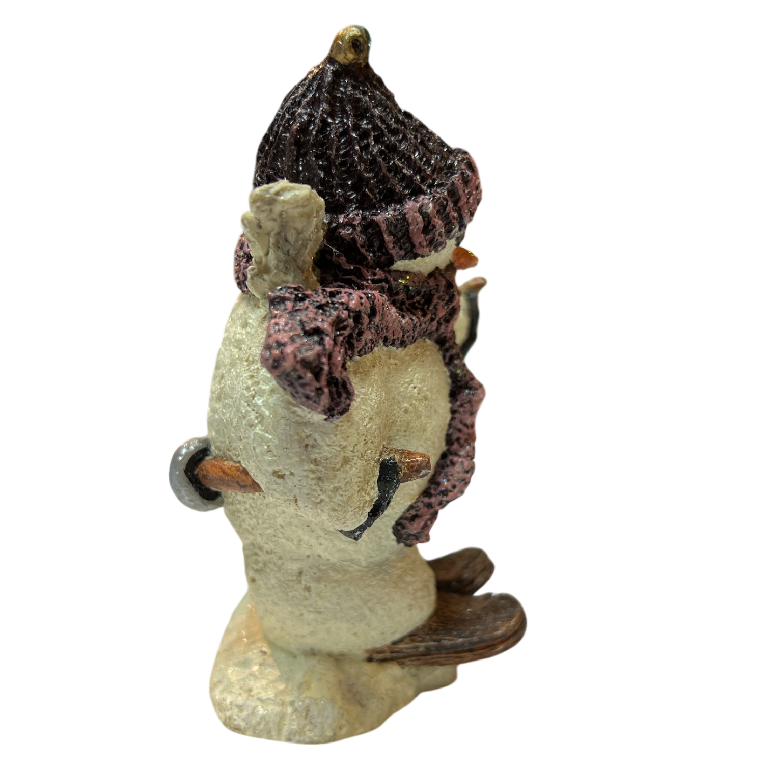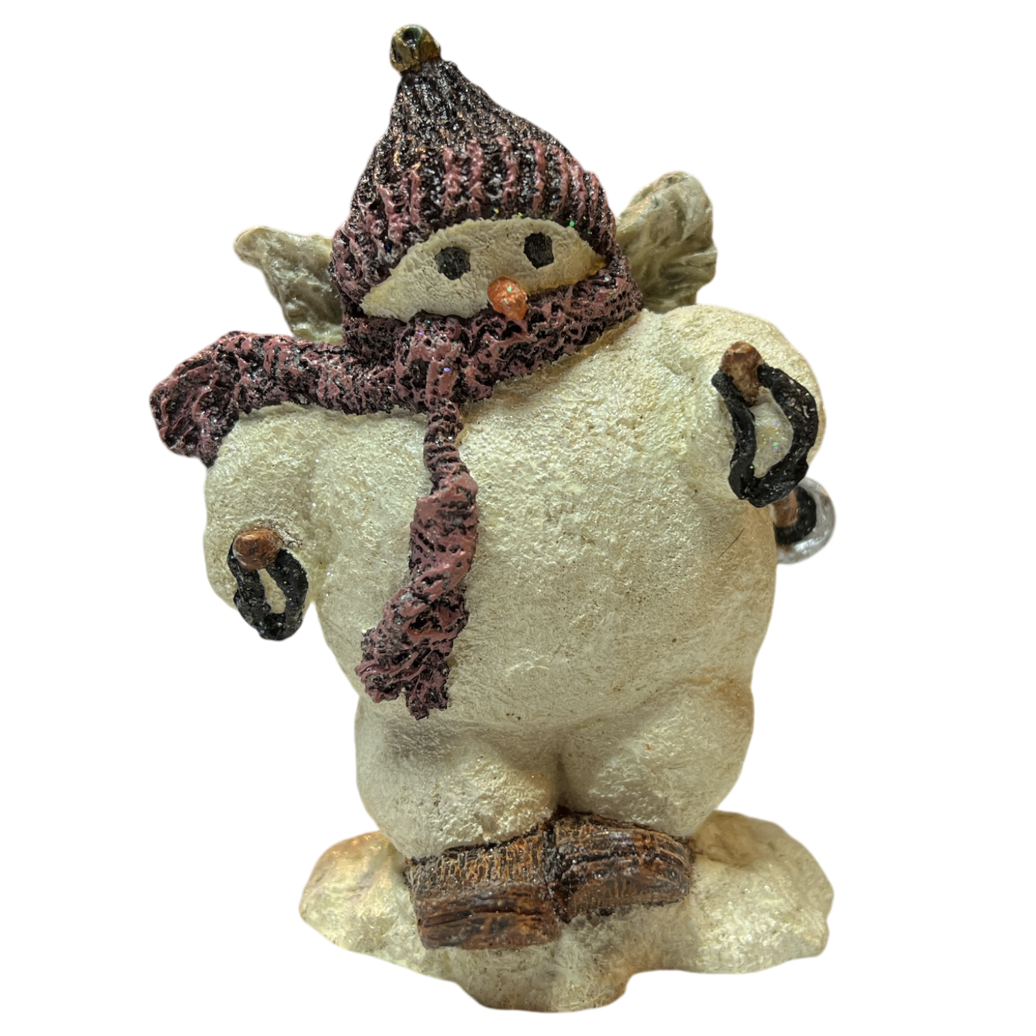 Welcome the playful charm of the "First Time On Skis" MeKenna Angel Figurine into your holiday collection. This adorable snowman, just over 4 inches tall, is bundled up in a cozy knit hat and scarf, ready to embrace the snowy slopes with novice enthusiasm. The figurine captures every delightful detail, from the bright orange carrot nose to the tiny skis and cautious stance that embody the excitement and trepidation of a first skiing adventure.