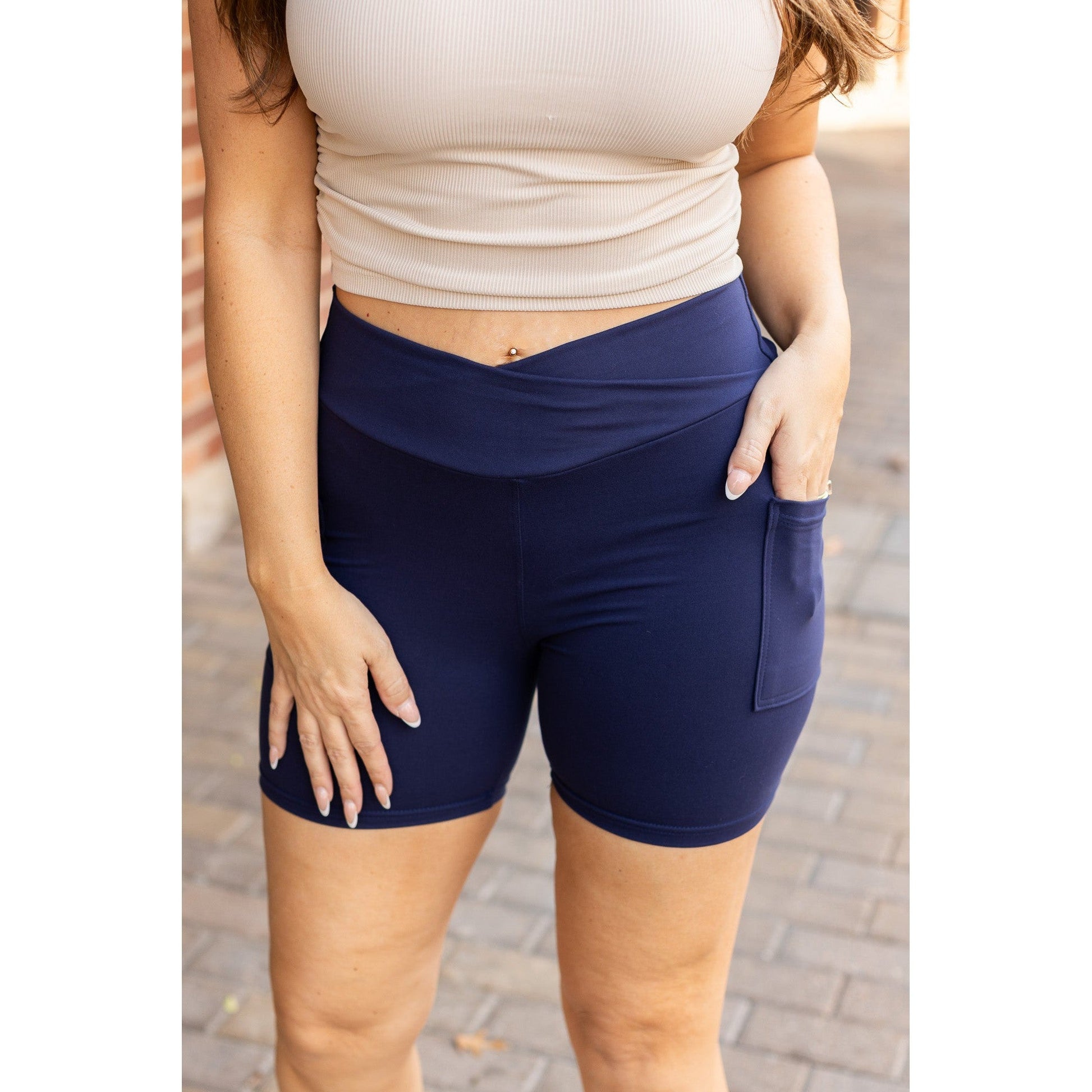 Ready to Ship | The Abby - NAVY Crossover Biker 5 Shorts R2 - Luxe Leggings by Julia Rose®