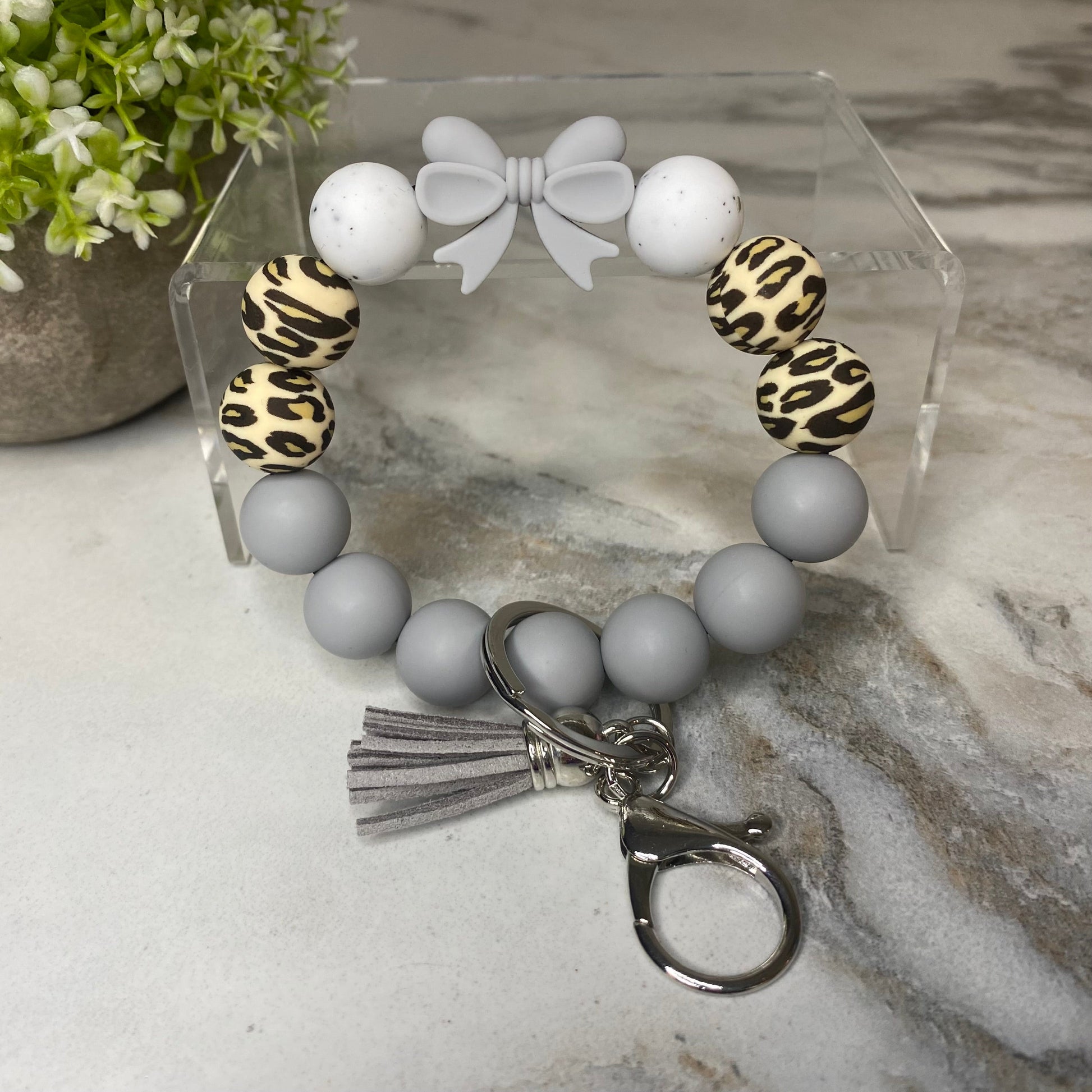 Silicone Bracelet Keychain - Grey Bow