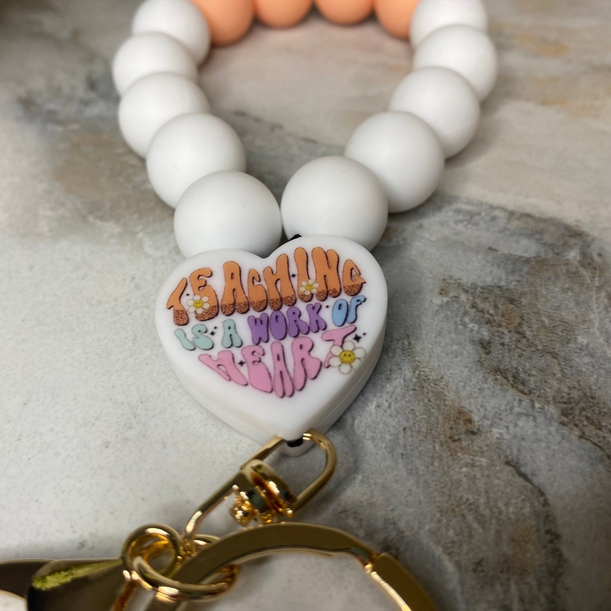 Silicone Bracelet Keychain - Teach - Orange Cream